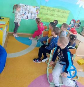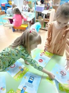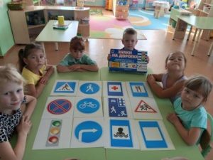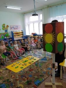 В течение этого времени с детьми проведены тематические беседы о правилах дорожного движения: «Мы знакомимся с улицей», «Дети и дорога!», «Зебра». В младшей группе была проведена организованная образовательная деятельность на тему «Светофор», где дети познакомились со светофором, закрепили знания об основных цветах: красный, желтый, зеленый. В средней группе и подготовительной к школе группе также была проведена организованная образовательная деятельность на тему «Помощники на дороге» и «Безопасная дорога». Педагоги с детьми закрепляли знания детей о назначении светофора, его сигналах, учились правильному поведению на дорогах, улицах, дворах домов.