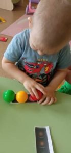 В младшей группе №4 «Ромашки» ребята в фойе детского сада, где расположена информация по правилам безопасности, поиграли с модульным транспортом, обыграли ситуацию пешеход и светофор. В группе используя наборы «Дары Фребеля» создали макет светофора.